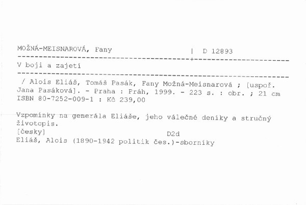 | Autor | Alois Eliáš, Tomáš Pasák, Fany Možná-Meisnarová ; [uspoř. Jana Pasáková] |