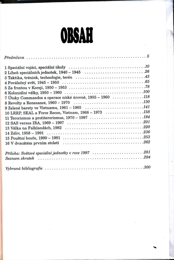 Přehled vývoje speciálních vojenských jednotek v letech 1945-1997, jejich konkrétní bojové operace a perspektivní úkoly zejména v boji proti terorismu.