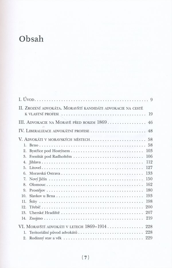 Kapitoly popisují dějiny advokacie na území Moravy v letech 1869-1914 a vliv této profese na zdejší společnost.