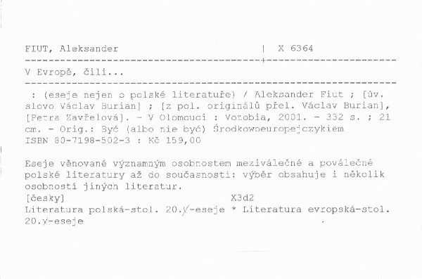 | Autor | Aleksander Fiut ; [úv. slovo V. Burian] ; [z pol. originálů přel. Václav Burian], [Petra Zavřelová] |