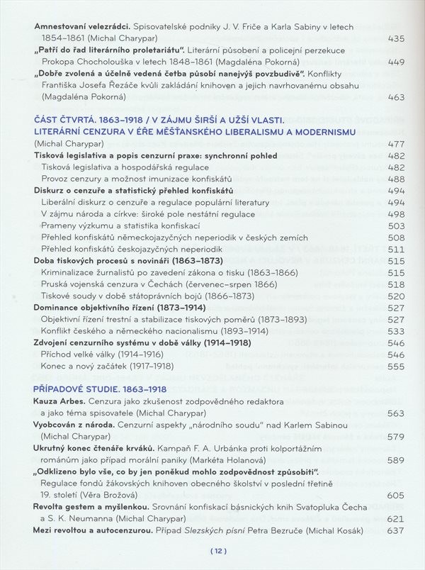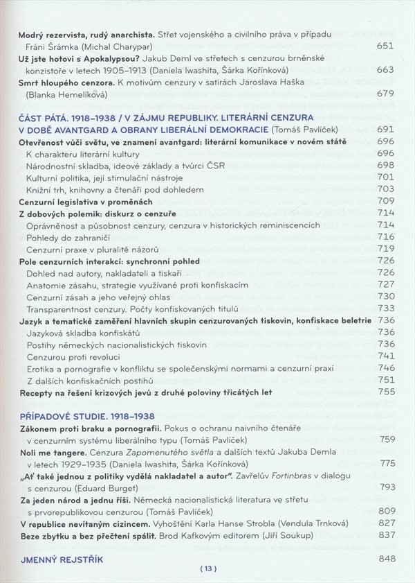 Kniha zkoumá proměny cenzury literatury a tisku od nástupu osvícenství až do počátku 21. století a masového rozšíření internetu. Svazek 1 zahrnuje léta 1749 - 1938.