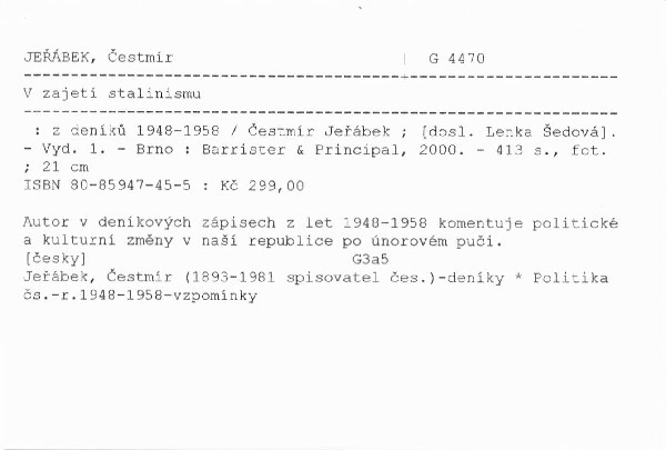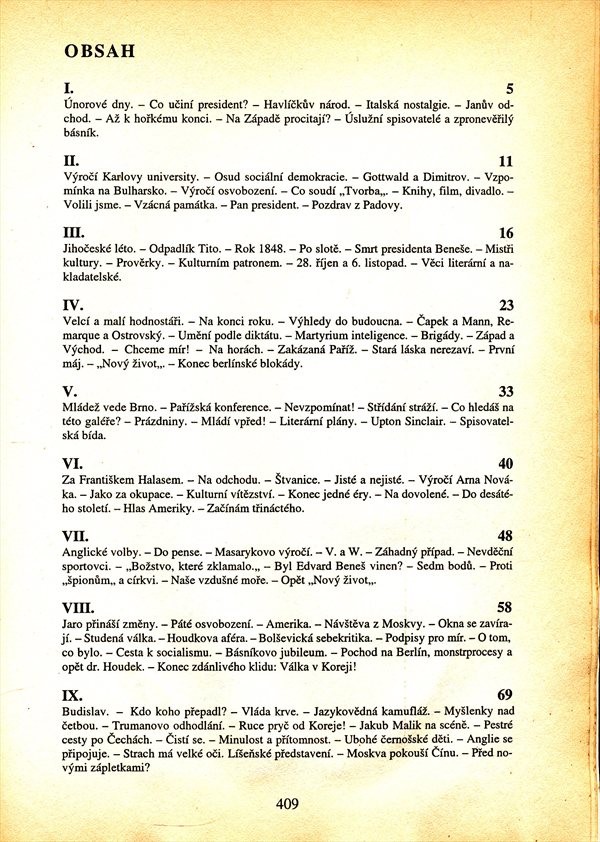 Autor v deníkových zápisech z let 1948-1958 komentuje politické a kulturní změny v naší republice po únorovém puči.