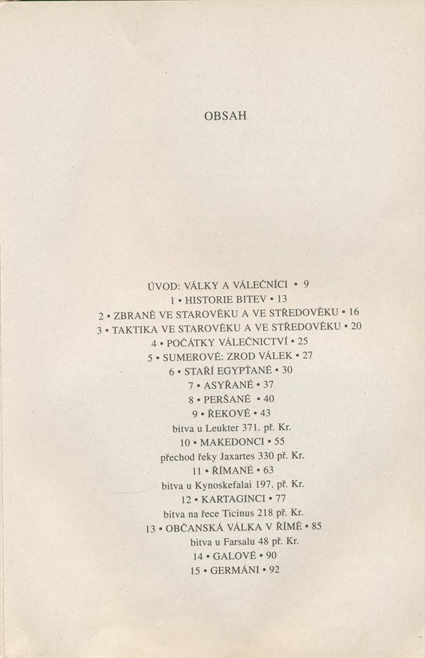 Popis vývoje válečnictví, vojenské strategie, zbraní i průběhu jednotlivých významných bitev starověku a středověku.