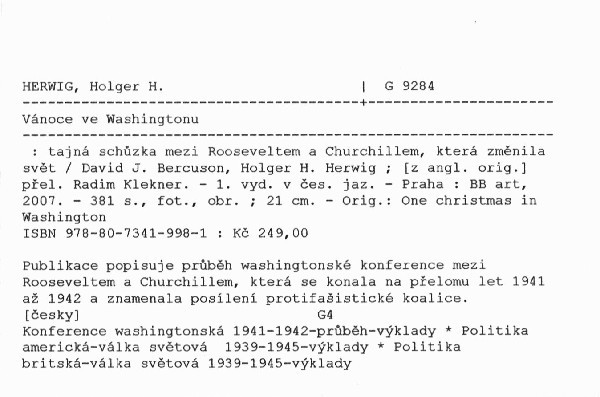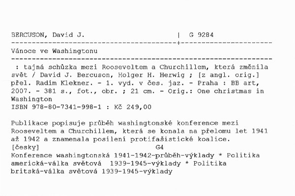 Publikace popisuje průběh washingtonské konference mezi Rooseveltem a Churchillem, která se konala na přelomu let 1941 až 1942 a znamenala posílení protifašistické koalice.