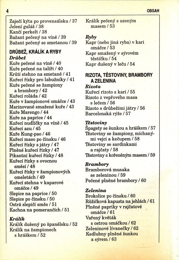 Předpisy na pokrmy všech typů - předkrmů, polévek, masových pokrmů, zeleniny, moučníků. Dávky potravin jsou měřeny na skleničky o obsahu 200 ml.