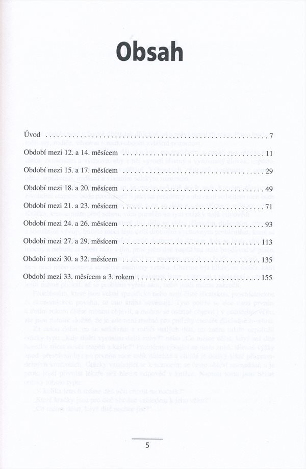Kompendium všeho, co potřebují vědět rodiče při péči o dítě ve věku do 1 do 3 let a při jeho výchově. Praktický, podrobný rádce sleduje vývoj dítěte po tříměsíčních etapách, tedy ve 12 až 14 měsících, 15 až 17 měsících 18 až 20 měsících atd. V každé z těchto kapitol (etap) se autorka věnuje vývoji osobnosti, fyzickému, jazykovému vývoji, sociabilitě, hrám a hračkám, jídlu, psychologickým a výchovným otázkám a dalším praktickým radám. Nakladatelská anotace.