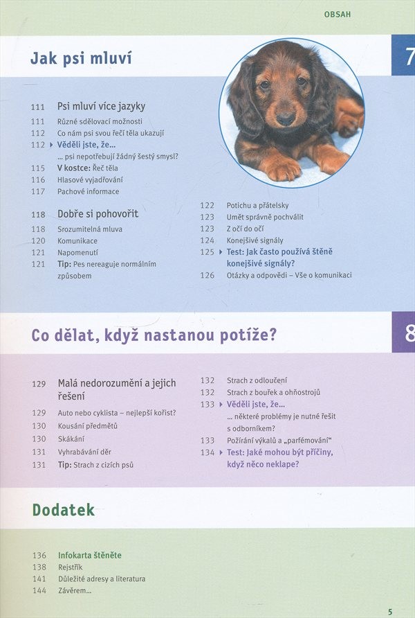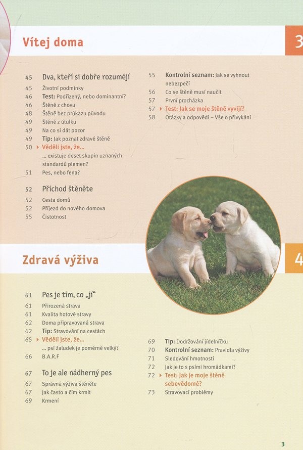 Publikace poradí s výběrem štěněte, pomůže s přípravou podmínek pro příchod nového člena domácnosti, obsahuje základní informace o zdravé výživě, zdraví, výchově štěněte a rady pro řešení problémových situací (nežádoucí chování psa).