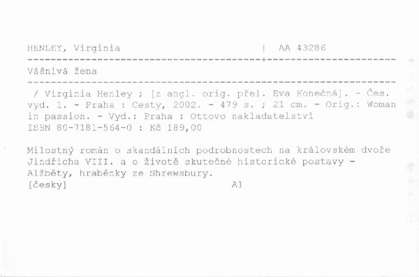 | Autor | Virginia Henley ; [z angl. orig. přel. Eva Konečná] |
