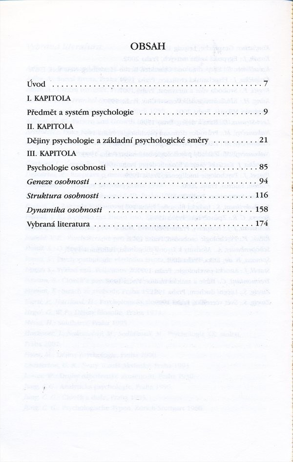 Kniha se snaží srozumitelnou a přehlednou formou prezentovat psychologii jako vědní obor. Zaměřuje se na dějiny psychologie, ale také na psychologii osobnosti, která prostupuje životem každého z nás a ze které vyrůstá aplikovaná psychologie. Dějiny mapují vývoj oboru od nejstarších dob, kdy psychologie byla součástí filozofie, medicíny a náboženství. Ukazují její spjatost s dalšími vědními obory a přerod v moderní vědu (experimentální psychologie Wundta a Jamese, behaviorismus Watsona, nástup psychoanalýzy, analytické psychologie a pokračovatelů v linii hlubinné psychologie). Výklady jednotlivých směrů a dějinných etap provázejí názorné příklady a oživující ukázky z praxe psychologů. Úvod do psychologie osobnosti zahrnuje výklad tří základních složek - geneze osobnosti, struktury osobnosti a dynamiky osobnosti. Opět jsou zde zmiňovány základní koncepce světových psychologů.