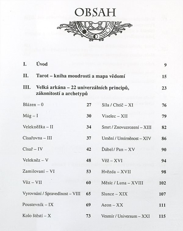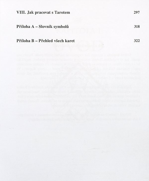 Kniha přináší mimo jiné rozbor moderní a starověké symboliky spjaté s Tarotem, dosud nejpodrobnější popis 78 karet Thothova Tarotu, výklad původu a historie Tarotu, souvislosti karet s duchovním zráním člověka, vztahy mezi jednotlivými kartami, návod výpočtu tarotového horoskopu atd.
