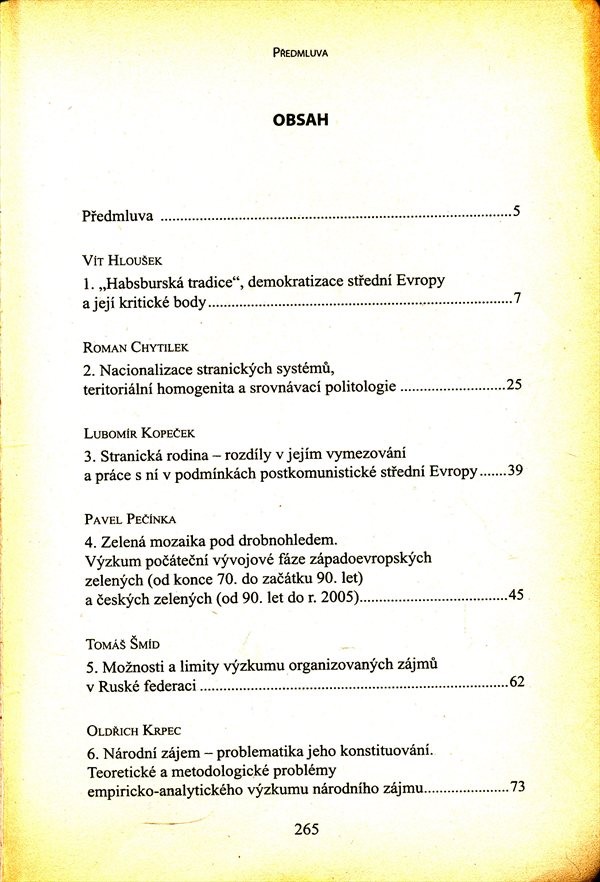 | Obsah OCHu | Politika všeobecně (bezpečnostní politika atd.). Politologie. Politická ideologie. |