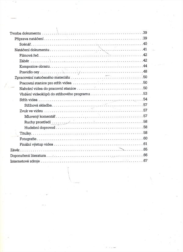 Cílem příručky je představit možnosti audiovizuálních snímků. Seznamuje s potřebným technickým vybavením a příslušenstvím, v druhé části pak se zpracováním videosnímku od jeho počátku až po finální výstup.