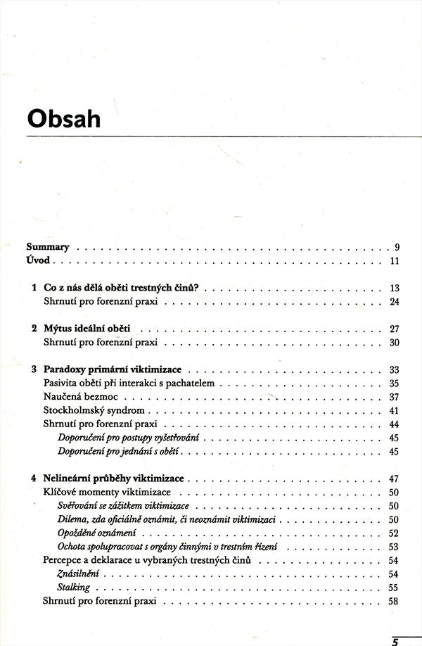 Problematika odvětví kriminologie zabývajícího se oběťmi trestních činů. Určeno právníkům, psychologům, policistům, státním zástupcům, soudcům, ale i advokátům obžalovaných.