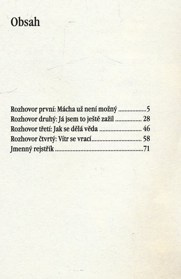 Rozhovory se Zdeňkem Gábou se týkají především jeho uměleckých zájmů; počátků vlastní tvorby, jeho literárních vrstevníků a literárních lásek, jeho současné literární tvorby, literárního života, kultury a umění, ale také české společnosti a jejích jistot; nadějí devětaosmdesátého roku. Závěrečný rozhovor je o tom, jak jsme po té "morální" revoluci dopadli. Východiskem je Zdeňku Gábovi ono Věčně znova z Březinových Rukou.