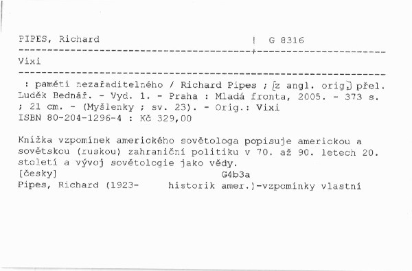 | Autor | Richard Pipes ; [z angl. orig.] přel. Luděk Bednář |