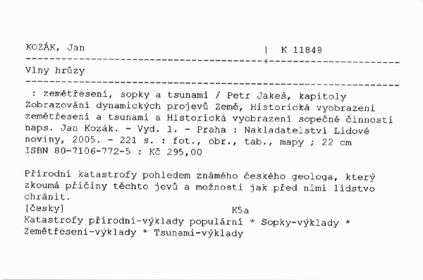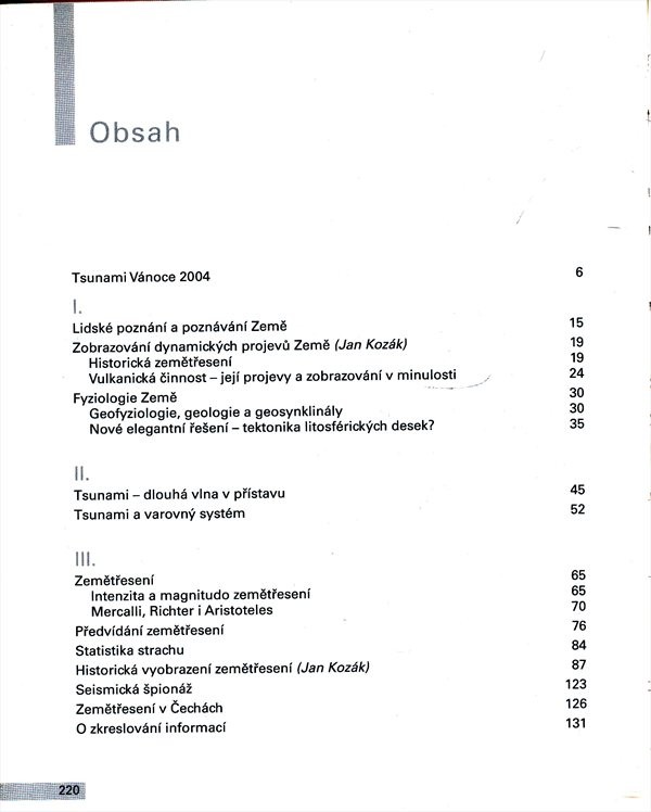 | Autor | Petr Jakeš, kapitoly Zobrazování dynamických projevů Země, Historická vyobrazení zemětřesení a tsunami a Historická vyobrazení sopečné činnosti naps. Jan T. Kozák |