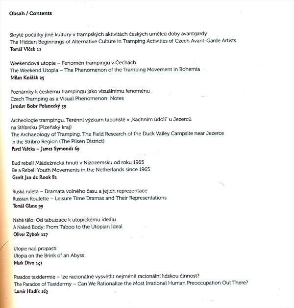 Česká část projektu, kterou zaštítila Národní galerie v Praze, se zabývá v jednotlivých příspěvcích reflexí kultury spojené s utopií trampství. V této perspektivě pojednává publikace o dalších alternativních hnutích 20. století, jejichž členové hledali alternativy ke konzumnímu způsobu života. Publikace mapuje způsoby, jak se tyto snahy projevovaly v oblasti vizuální kultury a umění.