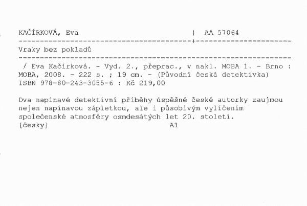 Dva napínavé detektivní příběhy úspěšné české autorky zaujmou nejen napínavou zápletkou, ale i působivým vylíčením společenské atmosféry osmdesátých let 20. století.
