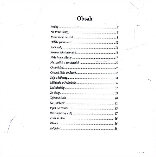 Havránkovo neúplné autobiografické vyprávění se začíná odehrávat počátkem třicátých let minulého století, kdy se narodil v obci Svatá nedaleko od Berouna, jež byla "přilepená k východnímu okraji hlubokých křivoklátských lesů." Autor popisuje zvyky a tradice tohoto kraje, dětské hry, povinnosti a zábavy, poutě a posvícení, zmiňuje se i o významných osobnostech, jež byly s jeho vsí spjaty, na straně druhé se však dotýká třeba i rybářské vášně, kterou "trpěla" značná část obyvatel tohoto regionu. Havránek nezapomíná ani na společenskou činnost, kterou zde zajišťovalo sokolstvo, dobrovolní hasiči nebo baráčníci. V neposlední řadě se však pochopitelně věnuje i protektorátním a válečným rokům, které i této malé osadě přinesly soustavné nebezpečí, ohrožení a dokonce i zmar lidských životů. Součástí knihy jsou dobové fotografie z autorova archivu, doplněné dále kresbami jeho přítele, výtvarníka Jiřího Vydry, rovněž rodáka ze Svaté.