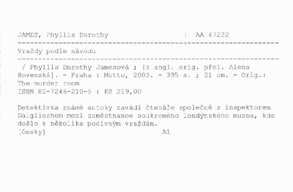 | Autor | Phyllis Dorothy Jamesová ; [z angl. orig. přel. Alena Rovenská] |