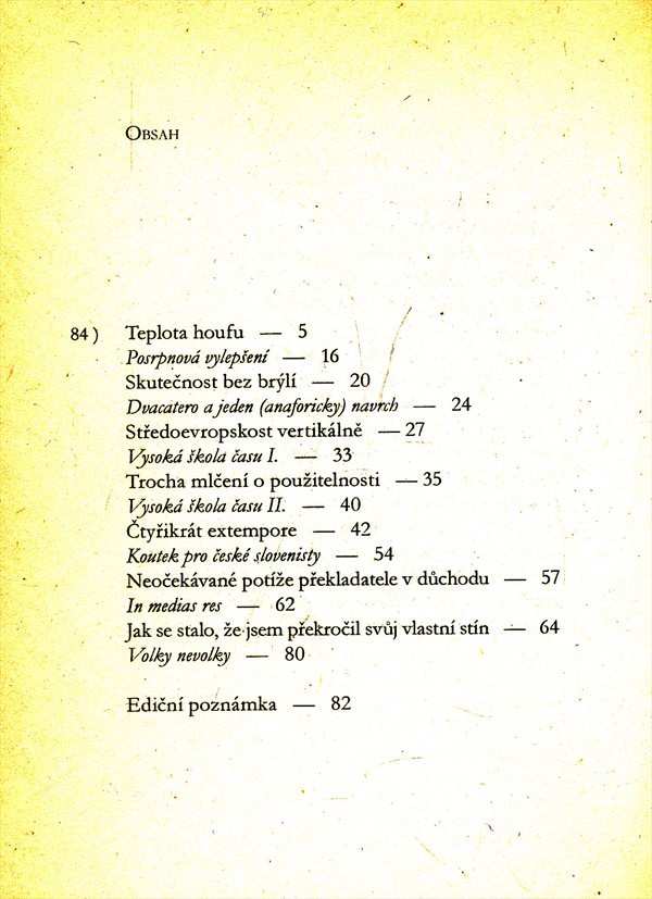 | Obsah OCHu | Eseje. Črty. Fejetony. |