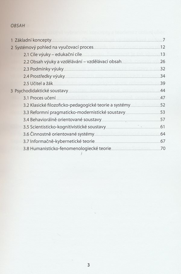 Učební text pro studenty distančního vzdělávání charakterizuje východiskové pedagogické pojmy a v rámci systémového pohledu na vyučovací proces předkládá specifikace jeho jednotlivých prvků.