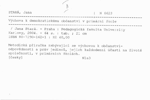 Metodická příručka zabývající se výchovou k občanství-odpovědností a práv jedinců, jejich každodenní účastí na životě společnosti, v primárních školách.