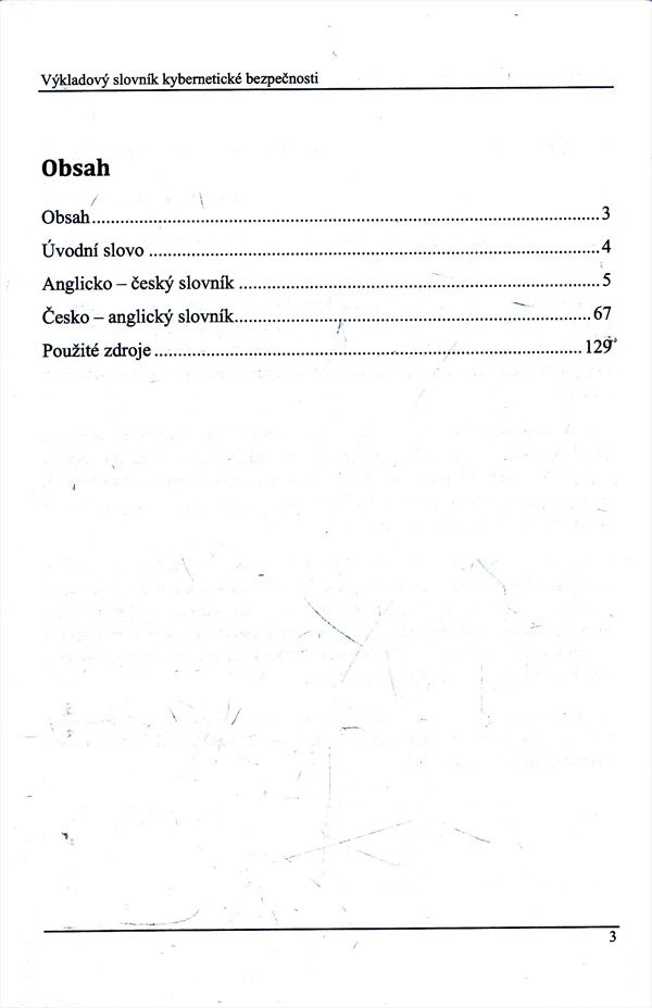 Dvojjazyčný výkladový slovník obsahuje český a zároveň anglický výklad různých pojmů z oblasti kybernetické bezpečnosti.