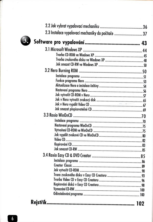 Publikace je rozdělena do tří částí. V první kapitole je kompaktní disk podrobně představen, dále je popsán způsob zápisu na toto médium a vysvětleny rozdíly mezi jednorázovým a přepisovacím CD (CD-R x CD-RW). Následují rady, které se týkají vypalovací mechaniky - tedy výběru a koupě, či instalace vypalovací mechaniky do počítače. Poslední kapitola představuje některé programy, které jsou určeny pro vypalování CD - tedy Nero Burning ROM, Easy CD&DVD Creator a WinOnCD. Autor se zmiňuje i o možnosti vypalování CD, které je zabudováno přímo v operačním systému Microsoft WindowsXP.