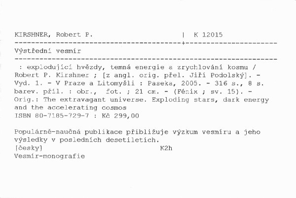 AutorRobert P. Kirshner ; [z angl. orig. přel. Jiří Podolský]