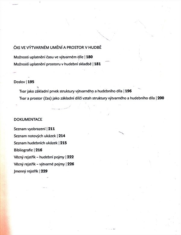 Autorovou ambicí je odkrývat strukturální a výrazové prostředky výtvarného umění a hudby a přispět tak k hlubšímu porozumění tvorby a jejím proměnám v průběhu staletí. V linii výkladu však nejde v prvé řadě o historický vývoj v obou druzích umění, ale především o jejich typologii, tedy o ohledání a interpretaci různých způsobů uměleckého vyjádření prostřednictvím výtvarného a hudebního umění. Autor propojuje teoretický výklad s analýzou konkrétních vybraných výtvarných a hudeních děl, seznamuje čtenáře zároveň i se základy oborového myšlení a s potřebnou odbornou terminlogií. Kniha je vybavena CD se zvukovými i obrazovými ukázkami souvisejícími s textem, v závěru autor předkládá seznam vyobrazení, notových a hudebních zvukových ukázek, bibliografický seznam literatury a rovněž věcné rejstříky hudebních a výtvarných pojmů a jmenný rejstřík.