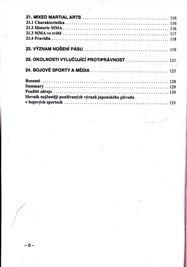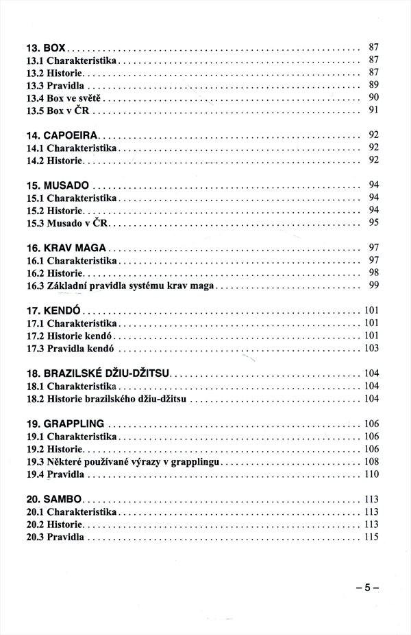 Publikace popisuje základní charakteristiky nejznámějších bojových sportů a umění, seznamuje s jejich historií a částečně i pravidly.