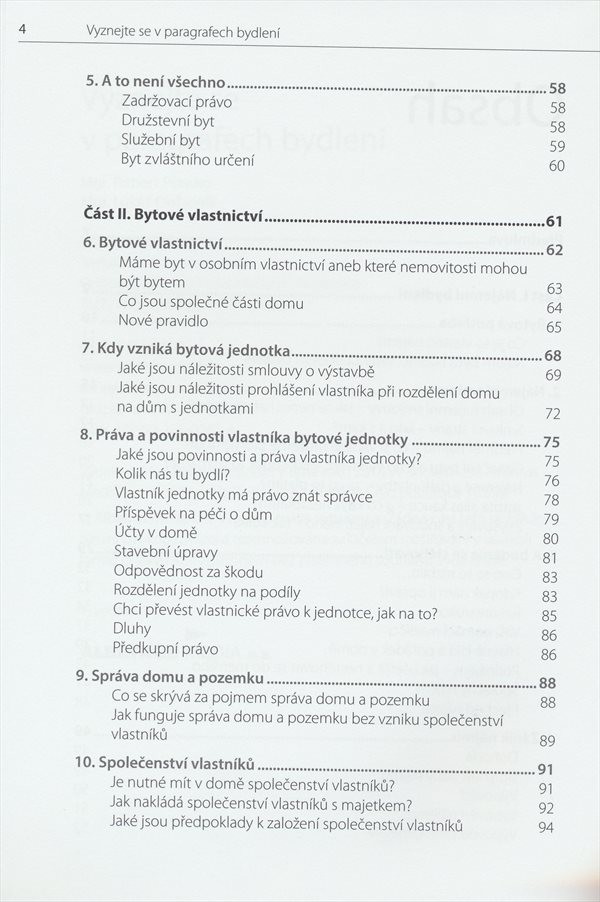 Příručka je zaměřená na otázky nájemního bydlení a bytového vlastnictví. Pro lepší pochopení jsou v textu uvedeny příklady. Práce vychází z právního stavu k 1. 7. 2014.
