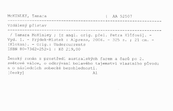 | Autor | Tamara McKinley ; [z angl. orig. přel. Petra Klůfová] |