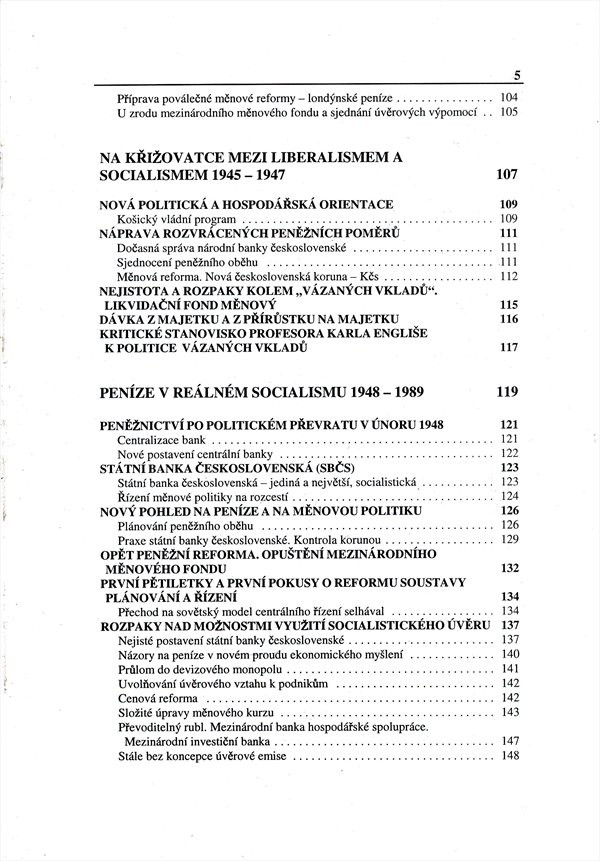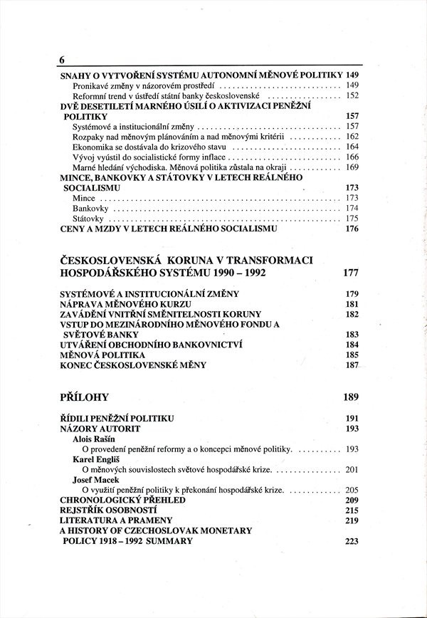 Publikace rekapituluje historické směřování československých měnových poměrů v letech 1918 až 1992.