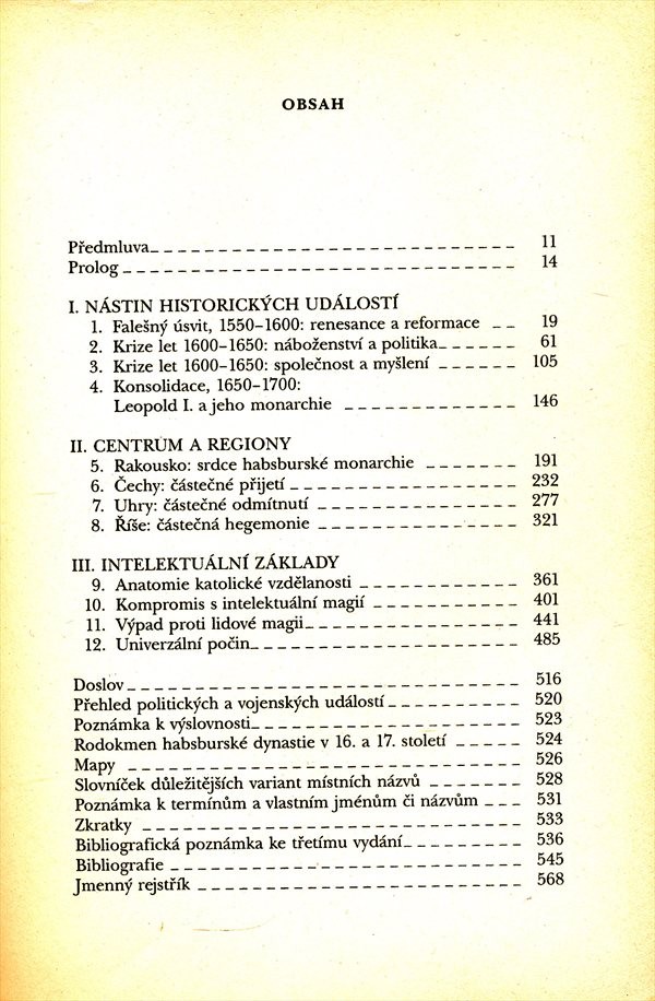 Proces vzniku monarchie, jejíž pevnou architekturu v 17. stol. spoluvytvářela především náboženská unifikace a katolická obnova, jednotný duchovní a kulturní vývoj a panovnický absolutismus Habsburků. Autor se pohybuje v obecné rovině. Nejedná se o popis politických dějin. V centru pozornosti je habsburská protireformace a její duchovní a kulturní kontext. Ve vztahu k českým dějinám, kde je toto období velmi negativně pociťováno a tradováno, dochází k určité korekci. Práce má zřejmý nadhled a širší evropskou optiku.
