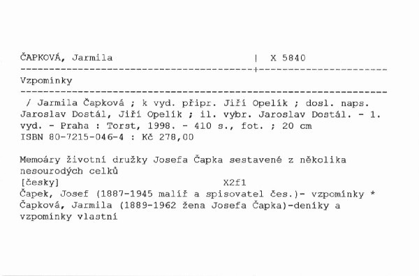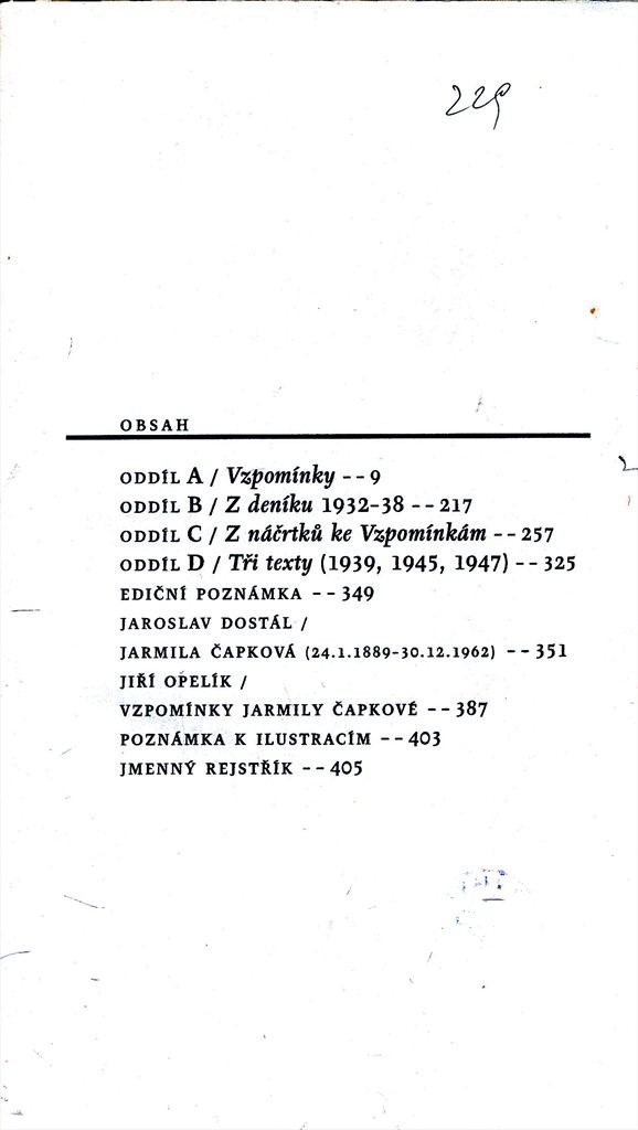 | Název dílčí části | Jarmila Čapková (24.1.1889-30.12.1962) /; Vzpomínky Jarmily Čapkové / |