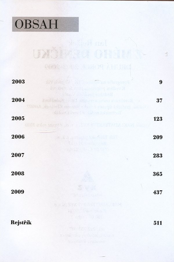 Známý hudební, filmový a televizní kritik ve svých článcích, které vycházely mezi lety 2003-2009 v Lidových novinách, komentuje dění z oblasti české politiky a kultury (např. filmové premiéry, koncerty, televizní pořady atd.). Kniha navazuje na autorovu předchozí práci Z mého deníčku 1984-2003.
