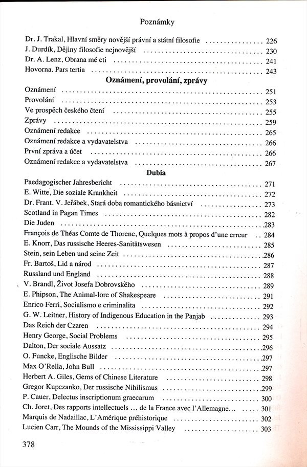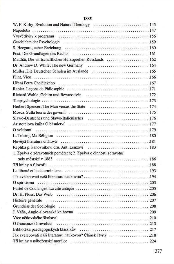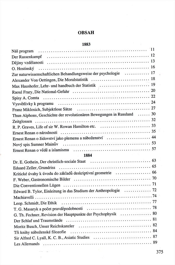 Tematicky různorodé příspěvky ilustrují profil prestižního odborného časopisu, který T. G. Masaryk vydával v l. 1883-1893 a sám byl jeho předním přispěvatelem. Časopis prezentoval nejnovější výsledky vědecké práce zahraničních i domácích odborníků. Jeho posláním bylo zejména zkvalitnění české vědecké literatury.