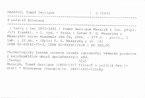 Vydání: Ústav T. G. Masaryka 2004 | Jazyk: čeština | Signatura: D 15670