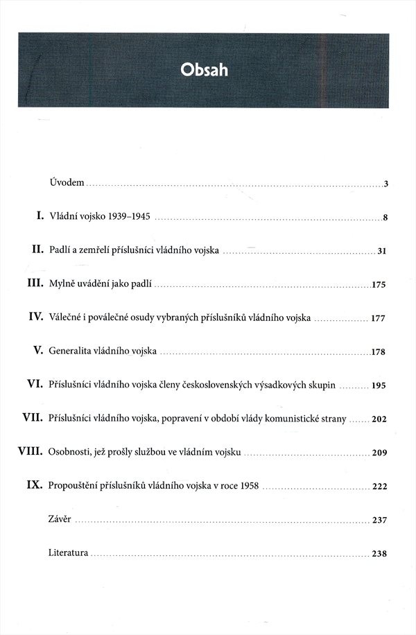 Medailony příslušníků vládního vojska, kteří zemřeli v průběhu 2. světové války. Součástí práce jsou rovněž stručné údaje o vzniku, výzbroji, nasazení i organizaci těchto vojenských jednotek.