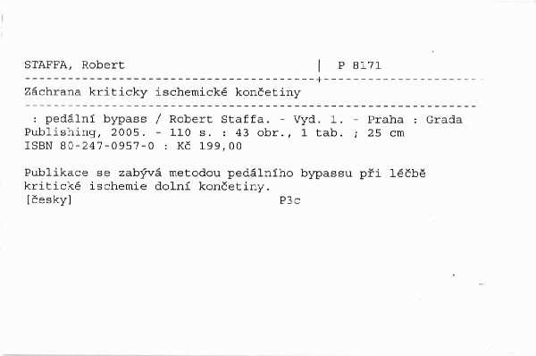 Publikace se zabývá metodou pedálního bypassu při léčbě kritické ischemie dolní končetiny.