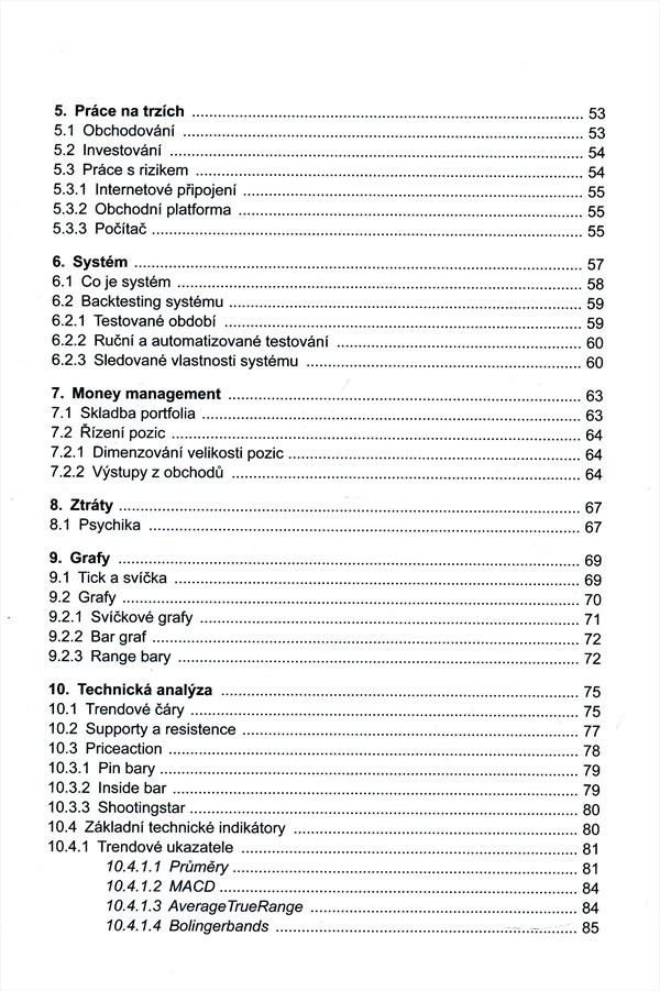 V knize naleznete popis finančních trhů, dozvíte se, proč (ne)jsou nebezpečné a jak se na nich chovat, abyste je dokázali využít ve svůj prospěch. Poznáte jak základní, tak pokročilejší techniky analýzy trhů a nejatraktivnější typy obchodovaných aktiv, jako jsou akcie, komodity, měnové trhy a opce. Seznámíte se s obchodními strategiemi, porozumíte správě peněz a v neposlední řadě také filozofii a psychologii kapitálového trhu. Nehledejte v knize rychlý návod na zbohatnutí nebo vydělání miliónů během pár týdnů. To s investováním a obchodováním nemá nic společného - to je hazard. Místo toho kniha nabízí návod, jak efektivně a chytře zhodnocovat finanční prostředky. Po přečtení budete rozumět finančním trhům, jejich pohybům a naučíte se, jak na těchto pohybech vydělávat. Nakladatelská anotace.