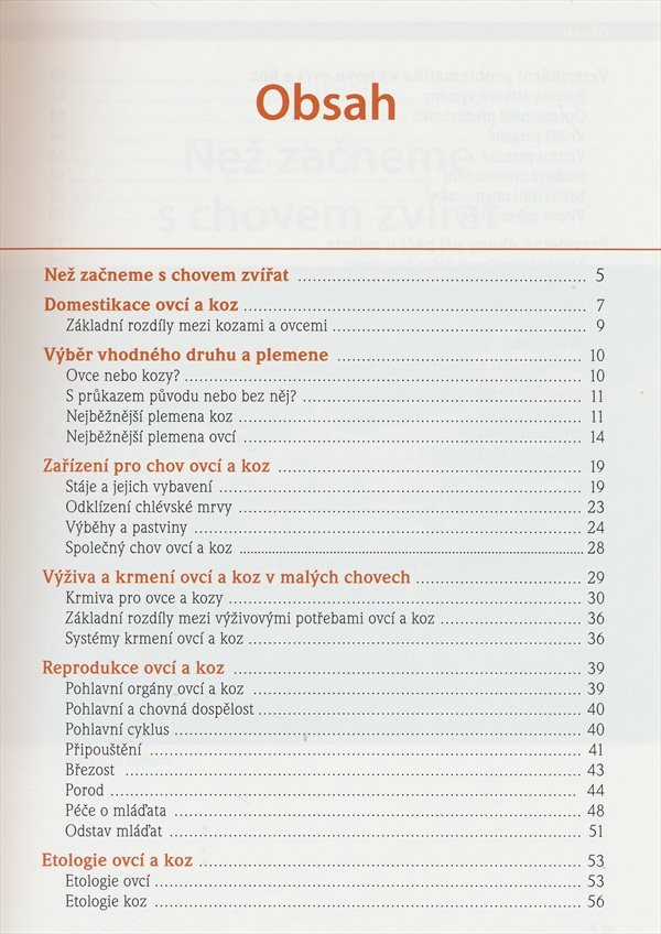 Autorka se je v této příručce snažila nejen vyjmenovat, ale především poradit, jak o zvířata pečovat, aby u vás nestrádala a poskytovala užitek, který očekáváte. Chovatelům dává základní informace o biologii a chování ovcí a koz, požadavcích na ustájení a krmení, o problematice reprodukce, nemocech a jejich prevenci. Velká kapitola se věnuje produktům chovu, jejich získávání a zpracování. Upozorňuje i na nejnutnější administrativní povinnosti. Nakladatelská anotace. Kráceno.