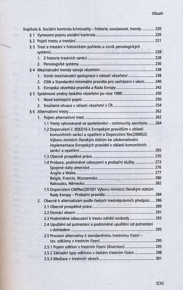 | Obsah OCHu | Trestní právo. Trestní řízení. Trestní procesní právo. Trestní zákon. Druhy trestů. Druhy trestných činů. Kriminologie. Kriminalistika. Vojenské trestní právo. Námořní trestní právo. Vězeňství. ODKAZ: Vojenská justice viz W1e1 |