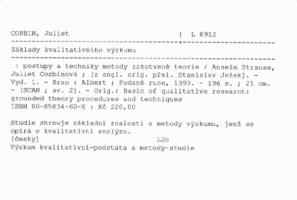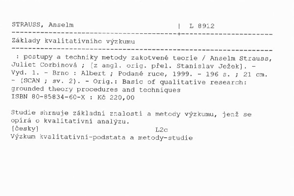 | Autor | Anselm Strauss, Juliet Corbinová ; [z angl. orig. přel. Stanislav Ježek] |