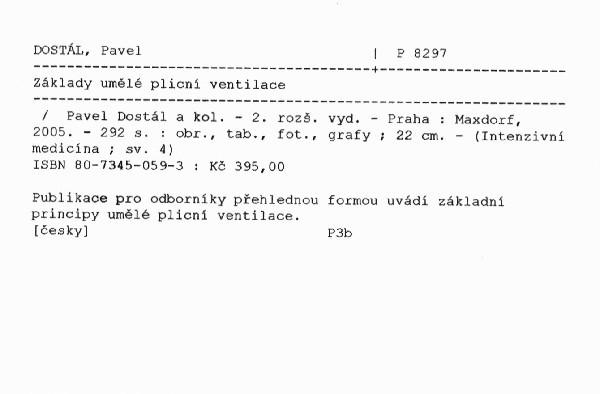Publikace pro odborníky přehlednou formou uvádí základní principy umělé plicní ventilace.