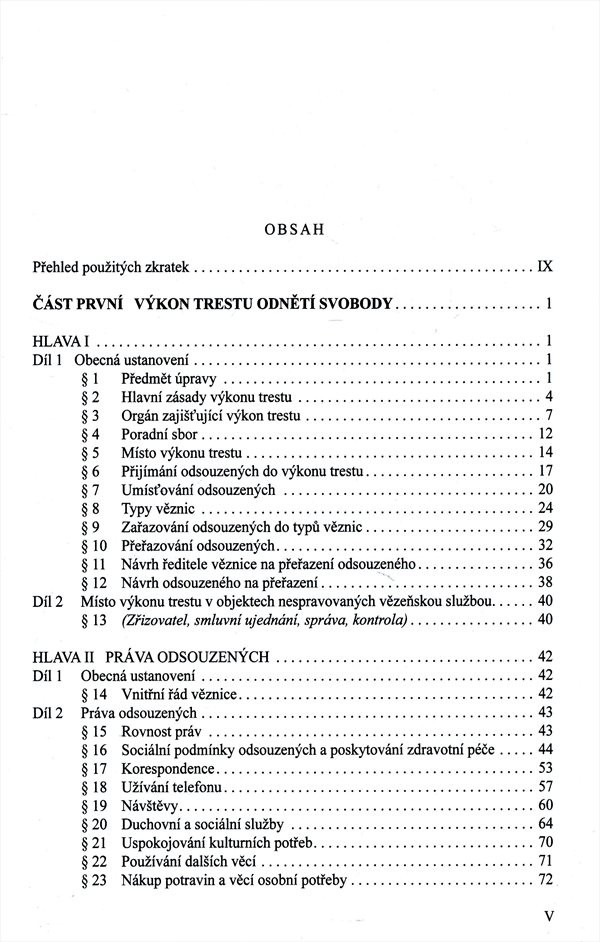 Přehled jednotlivých ustanovení zákona o výkonu trestu odnětí svobody s komentářem na základě právního stavu k 1. 1. 2012.
