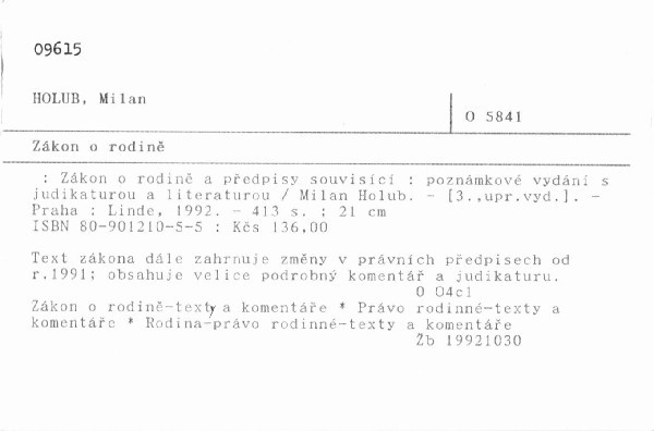 | Podnázev | Zákon o rodině a předpisy souvisící : poznámkové vydání s judikaturou a literaturou |
