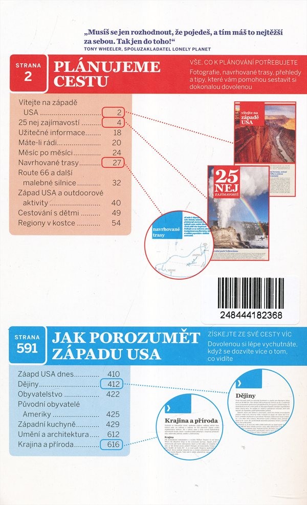 Praktický cestovní průvodce po americkém západě, zahrnující Kalifornii, Washington, Oregon, Montanu, Wyoming, Colorado, Idaho, Utah, Arizonu, Nové Mexiko a Nevadu. Mapky, doporučení, zajímavosti.